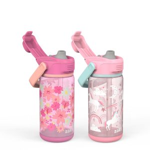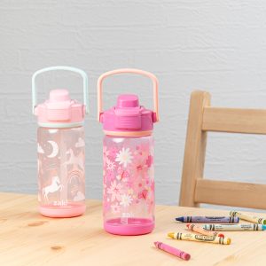 We know every day can be an adventure for our kiddos. and the 16oz Beacon Bottle from zak! is made to travel alongside young explorers on all of life’s most exciting endeavors. The wide carrying handle is ideal for little hands to grab-and-go. while the lid snaps tight to prevent leaks and??moms rejoice??keep the drinking spout clean. The spout is made from silicone so it’s comfortable for even the pickiest little ones to drink from. And while Mom and Dad will love the functionality and practicality of the Beacon Bottle. the look and feel can put a smile on your child’s face during all their adventures. Each bottle has unique graphics designed to unlock imaginations. featuring a range of interests from rockets and unicorns to zoo animals. dinosaurs and even their favorite animated characters.