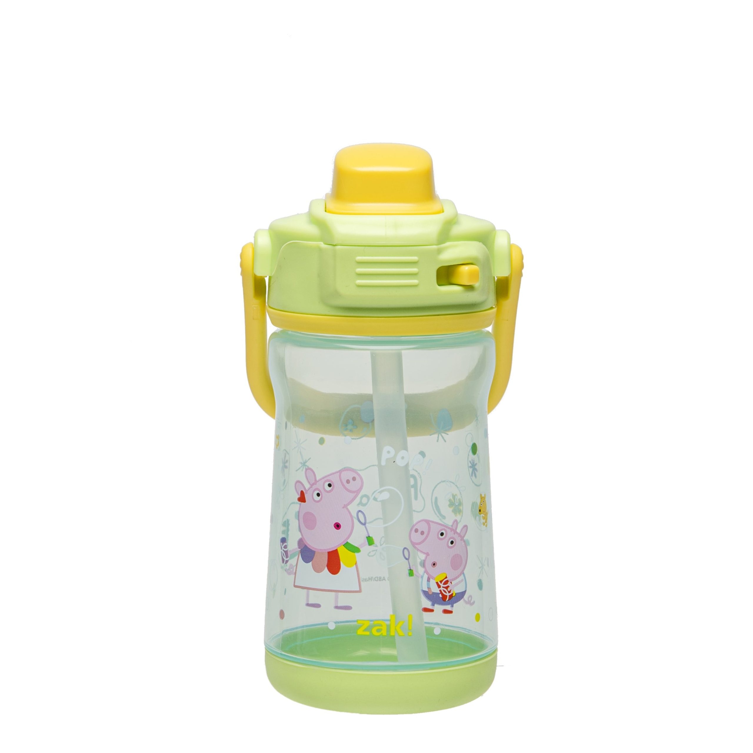 Whether it’s a school day. a playdate. or an exciting weekend adventure. the 12oz Peppa Pig Beacon Water Bottle from zak! is the perfect companion for keeping little ones hydrated. Made from sturdy. BPA-free plastic. it’s built to withstand the bumps and scrapes of an active lifestyle while ensuring safety and durability. The soft silicone spout is gentle and comfortable. and a flip-up protective cover opens with the push of a button. making it easy for kids to sip on the go. The spout locks securely to prevent leaks. and the non-skid base helps keep the bottle steady and absorbs impact to protect it from damage. Sized to fit in most car cup holders and equipped with a convenient carrying handle. this bottle is designed for grab-and-go convenience. When the adventure ends. simply toss it on the top rack of the dishwasher for a hassle-free cleanup. Featuring a fun design that adds a splash of joy to every sip. this reusable bottle is sure to make staying hydrated a highlight of your child’s day!